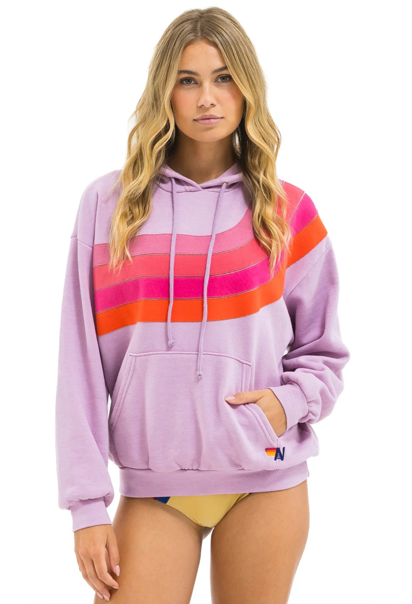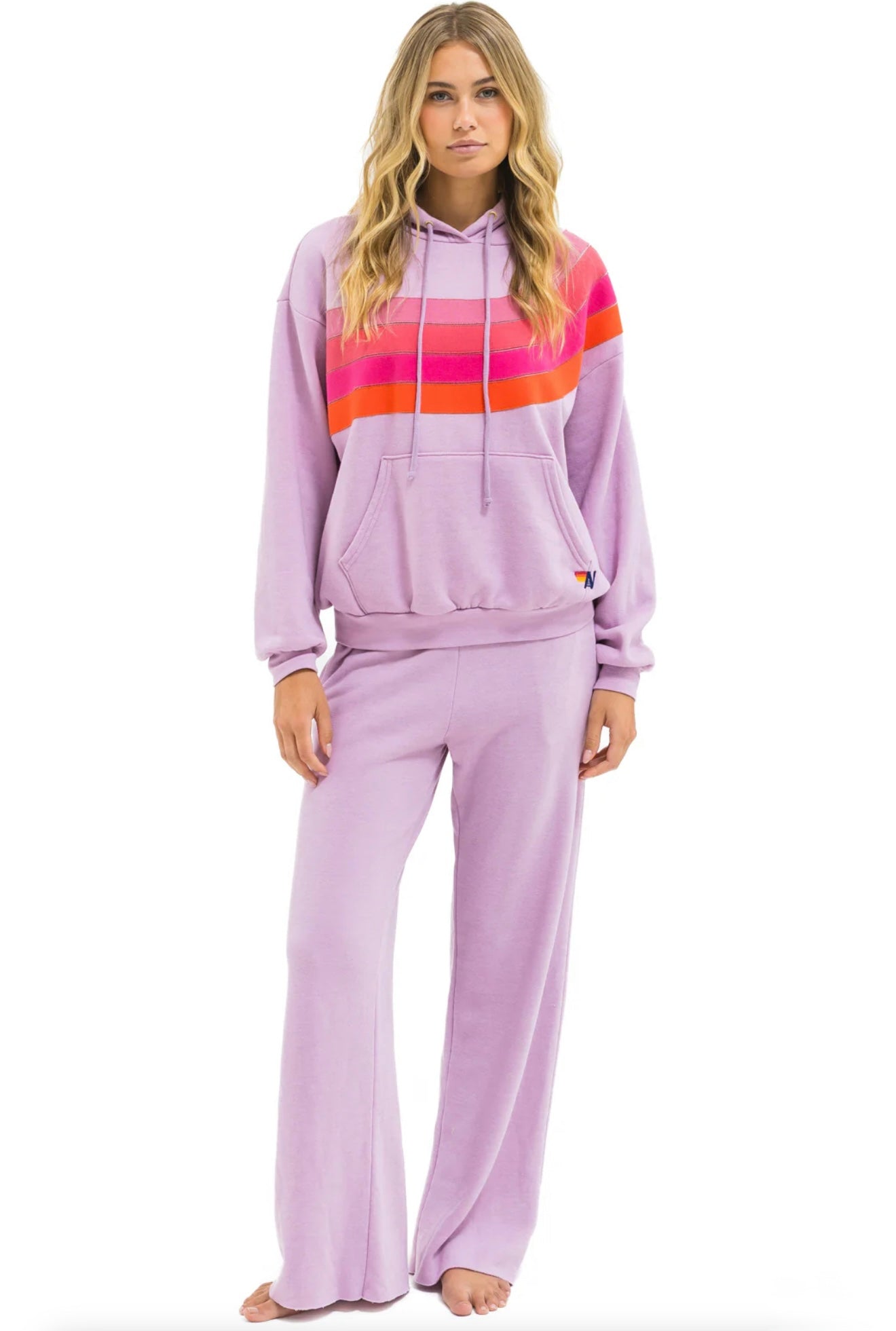 Aviator Nation WAVE STRIPE 4 PULLOVER HOODIE RELAXED MAUVE MAGENTA ORANGE